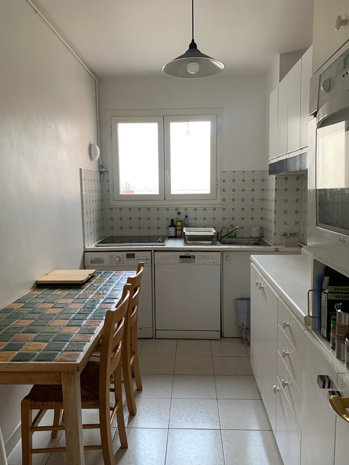 Au 5ème étage avec ascenseur dans une résidence sécurisée, un appartement de trois pièces comprenant une entrée avec placard, cuisine aménagée et équipée (plaques de cuisson à induction, réfrigérateur, lave-vaisselle, four micro-ondes, four électrique, lave-linge), nombreux rangements, salle de bains avec lavabo et baignoire, WC séparé, deux chambres, séjour avec balcon.