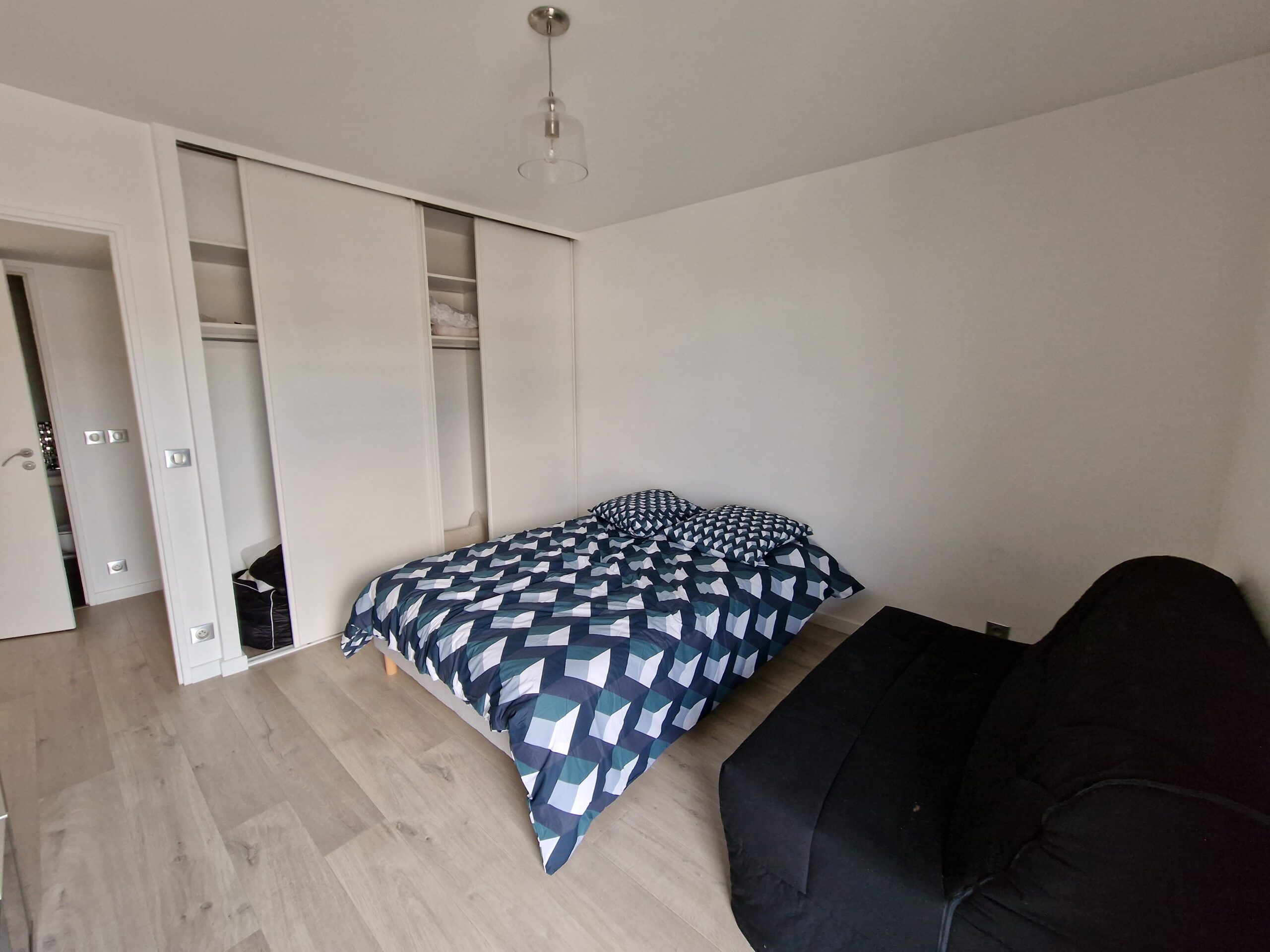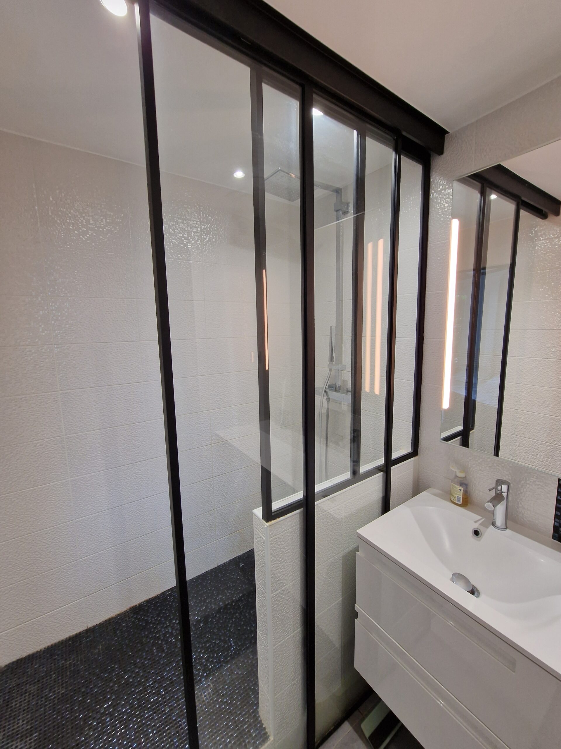 Salle d’eau fonctionnelle avec lavabo, douche, sèche serviette et W.C (attenante à la chambre parentale)
