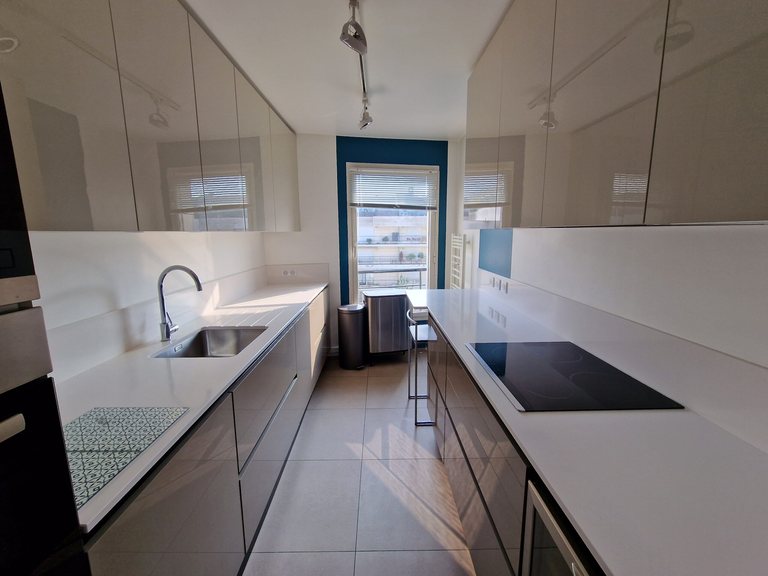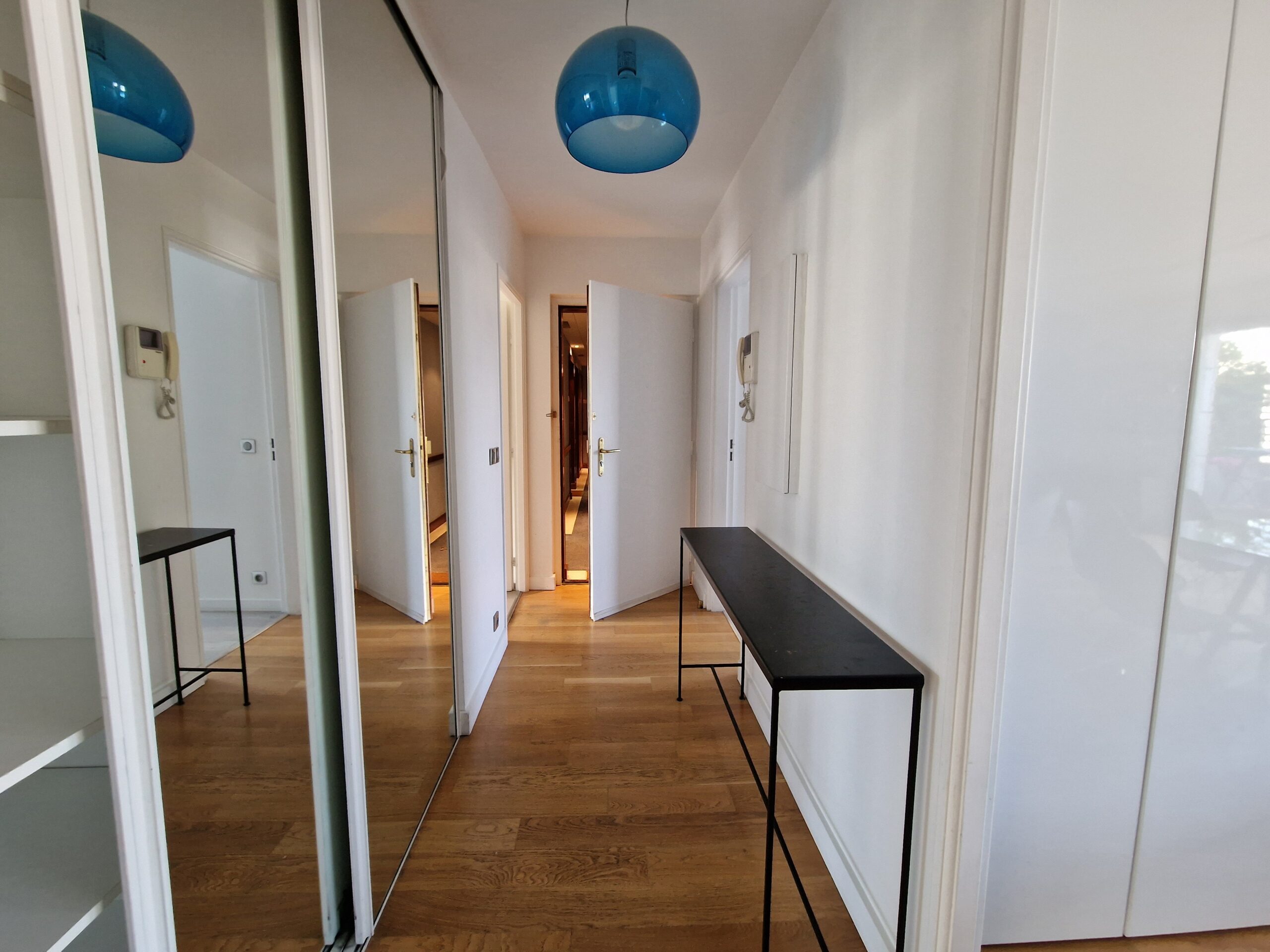 Entrée, séjour et chambre parentale avec dressing donnant sur une belle terrasse. 2 autres chambres (dont un avec dressing) donnant sur un balcon. Cuisine équipée et aménagée (évier, réfrigérateur, congélateur, lave-vaisselle, lave-linge, hotte, plaques de cuisson induction, four, four micro-onde, cave à vin)